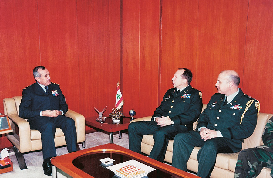 استقبل العماد قائد الجيش، في مكتبه في اليرزة، الملحق العسكري الأميركي المعتمد في لبنان المقدم نورمان لارسن في زيارة وداعية قدّم خلالها خلفه المقدم روبرت كارناهان.a