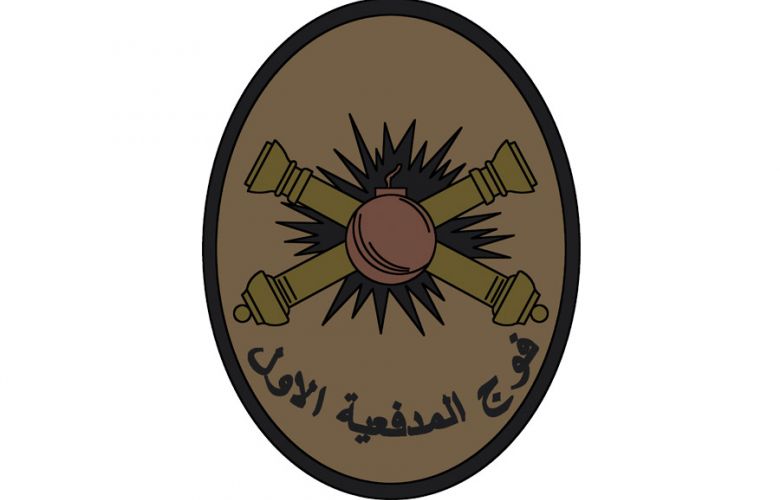 يتألف الشعار من مدفعين متقاطعين باللون الأخضر، تتوسطهما قذيفة حمراء للدلالة على سلاح المدفعية، ينبعث من خلفها وميض برتقالي يرمز إلى القوة والفعالية، وفي أسفل الشعار إسم الفوج باللون الأبيض وخلفيته باللون الأسود.