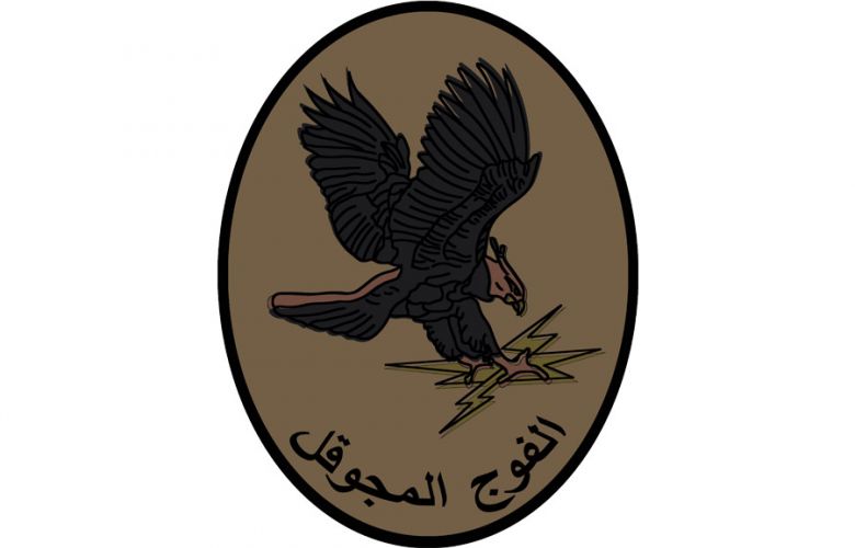 وهو عبارة عن قطعة قماش بيضاوية الشكل يتوسطها عنصر مراقبة ثابت في الأرض يحمل منظار ويراقب حدود الوطن ويدافع عنه. وأرزة خضراء ترمز الى شعار الوطن وطبيعته الخضراء وخلوده، واللون البني يرمز إلى تراب الوطن المقدس، وشريط شائك من اللون الأحمر يرمز الى حدود الوطن المحمي، واللون الأزرق يرمز إلى سماء الوطن الصافية وبداخله تسمية الفوج في أعلى الشعار.