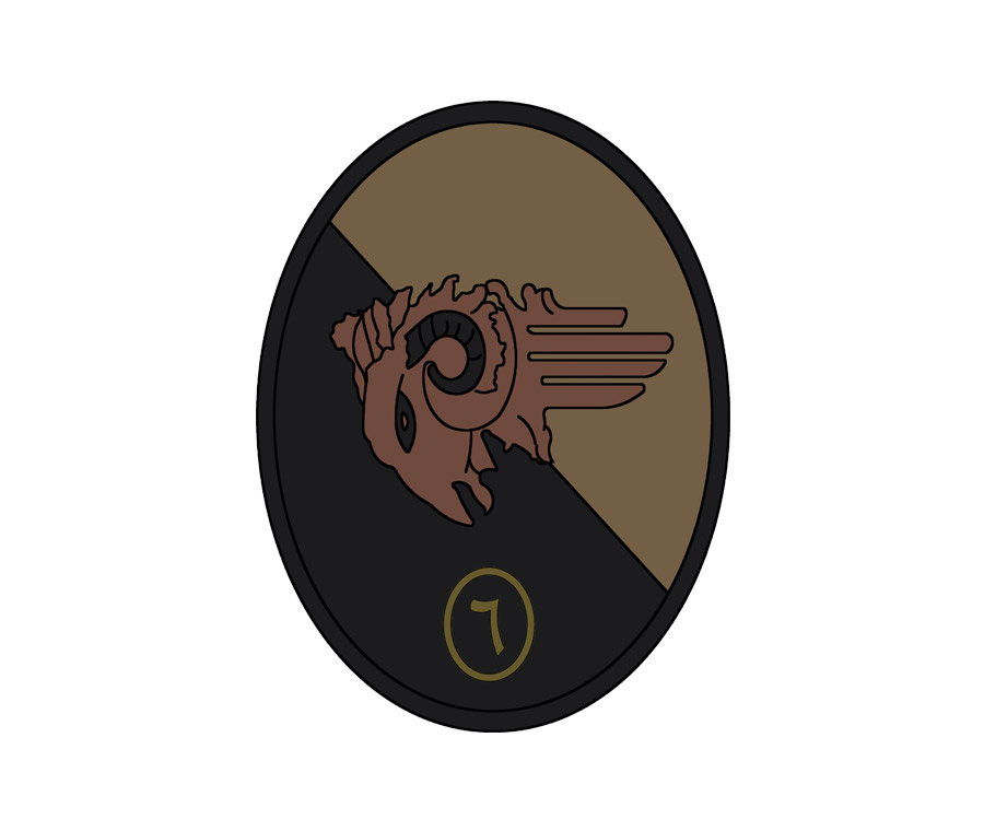 The emblem is composed of two colors background setting, blue on top and red below. A golden sheep head sits in the middle with fire tail, symbolizing the will to attack and assail with determination and resolution.