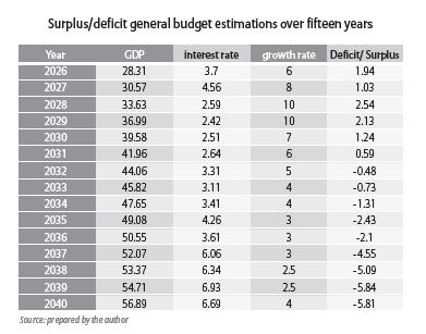 Furthermore, the empirical study, based on a simulation of the historical data of the three independent variables and the surplus/deficit calculation, shows that the public budget deficit will be renewed even though the GDP continues to rise.