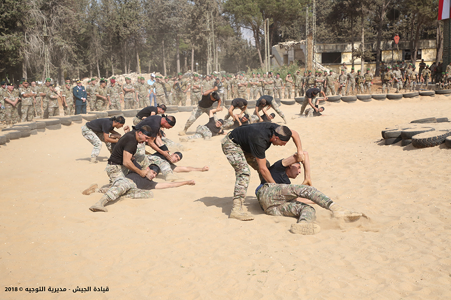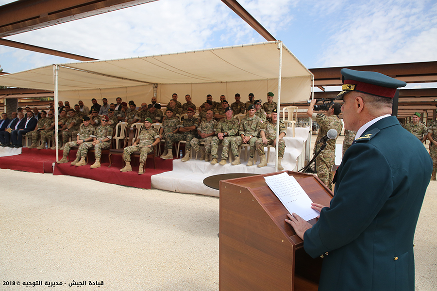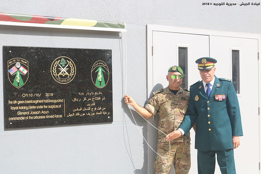 The inauguration ceremony of Riyak training center, offered as a donation from the US training team, was held at the headquarters of the 6th Intervention regiment – Riyak Airbase, under the patronage of the Armed Forces Commander General Joseph Aoun represented by the Chief of Staff for Personnel Brigadier General P.S.C Khalil Yehya and with the presence of official and social figures in addition to several officers from the Lebanese and US armies. Brigadier General P.S.C Yehya delivered a speech on the occasion in which he commended the initiative and efforts of the US team. His speech included: “training is regarded as a main pillar for armies and units, particularly the operational ones, since the constant perseverance to maintain it leads to complete harmony between the behavior and mindset of soldiers on one hand and the the various accidents that might confront them while performing their duty on the other hand. This is how the importance of this state of the art center is manifested in light of the difficult circumstance facing the country as well as the major defense and security missions burdening the LAF who will remain on guard to preserve internal and borderline security throughout Lebanon, particularly in the Bekaa that has accompanied the LAF since its establishment and provided its best of youth.”