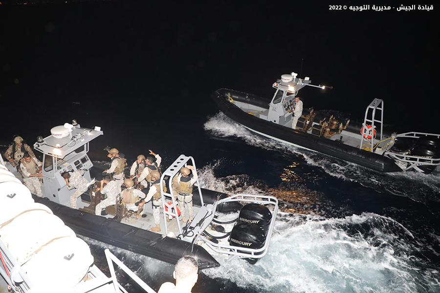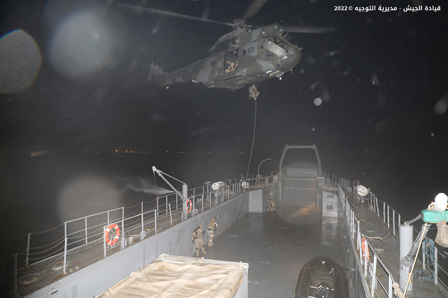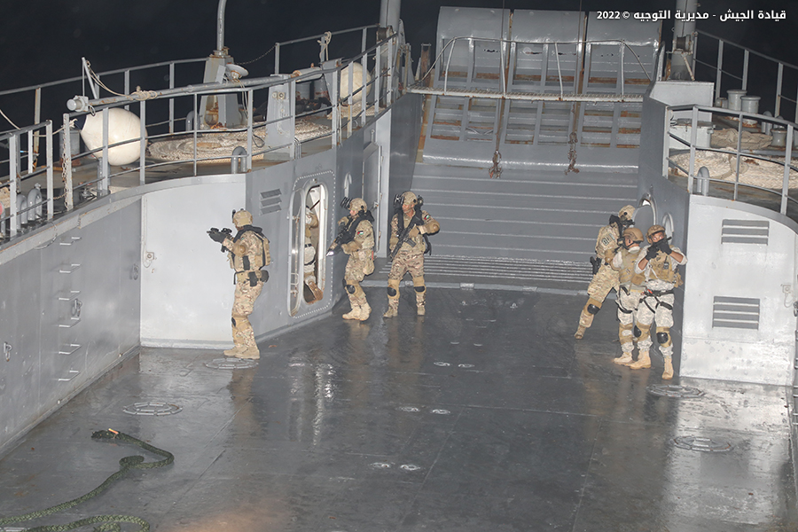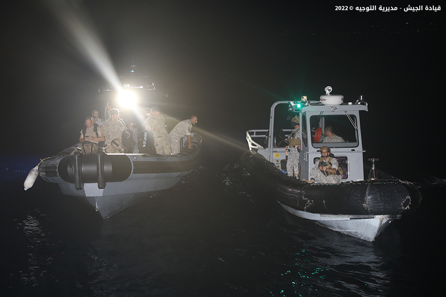 A unit of the Navy Forces, elements of the Marine Commandos Regiment and the Air Force, in addition to elements of the American training team and a team of Jordanian special forces, carried out an exercise simulating a ship attack, including boarding a hijacked boat and controlling it. A unit of the 12th Infantry Brigade and members of the military medical team carried out an exercise opposite the port of Tripoli, simulating the protection of vital facilities, as part of the joint exercise Resolute Union 2022, which is being implemented in cooperation between the Lebanese army units and elements of the American and Jordanian armies.