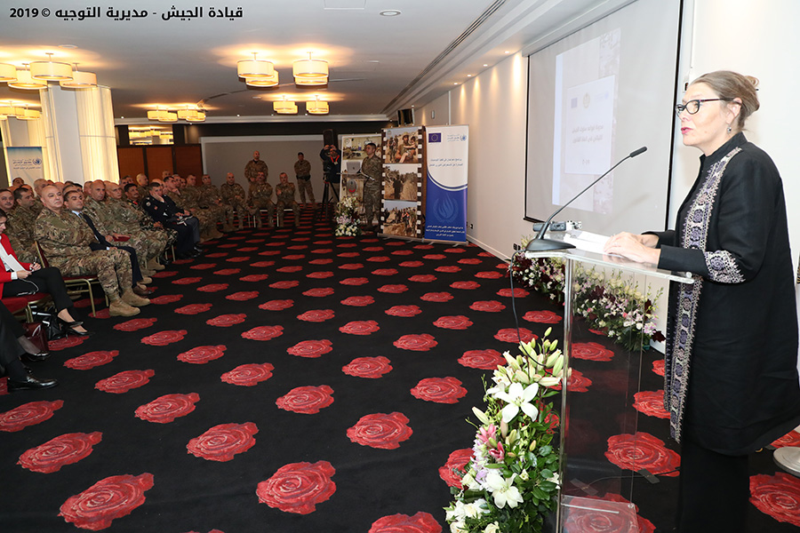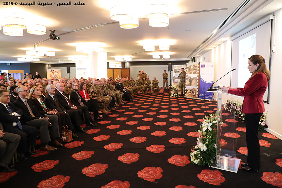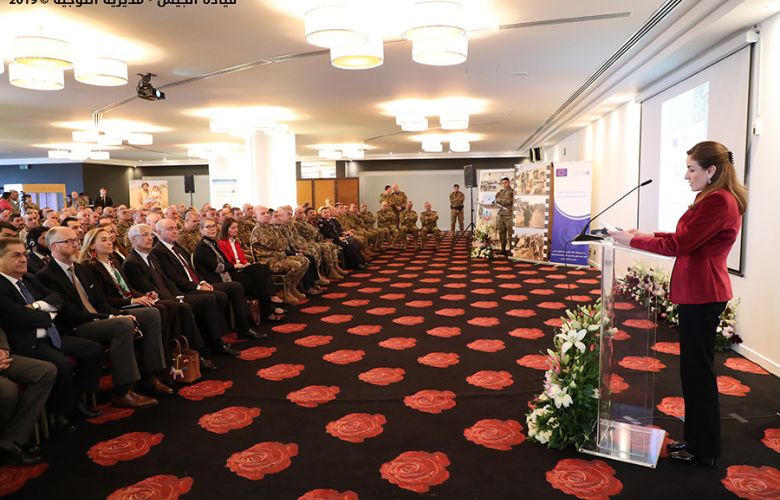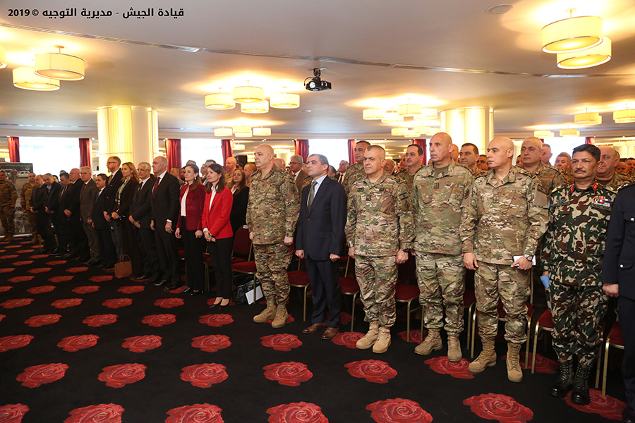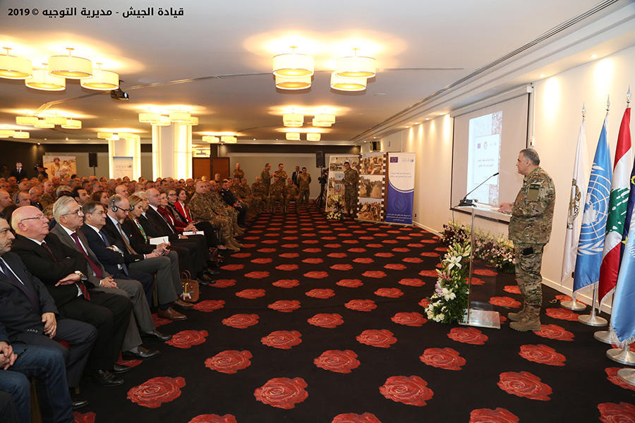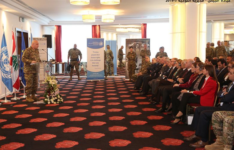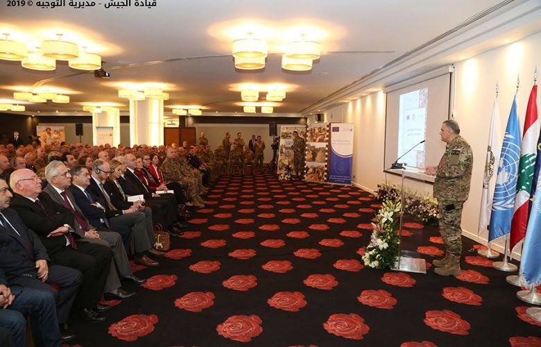 General Aoun delivered a speech on the occasion in which he confirmed the commitment of the military institution to the implementation of humanitarian boundaries while performing security missions and to enforcing accountability in order to guarantee the commitment to Human Rights. General Aoun stated that the LAF strives “to develop our combat capabilities and raise the level of personnel professionalism. The LAF is keen to cultivate the human sense and build a moral discipline”, emanating from the belief of the military institution in the importance of this role and its positive impact on society and citizens.
