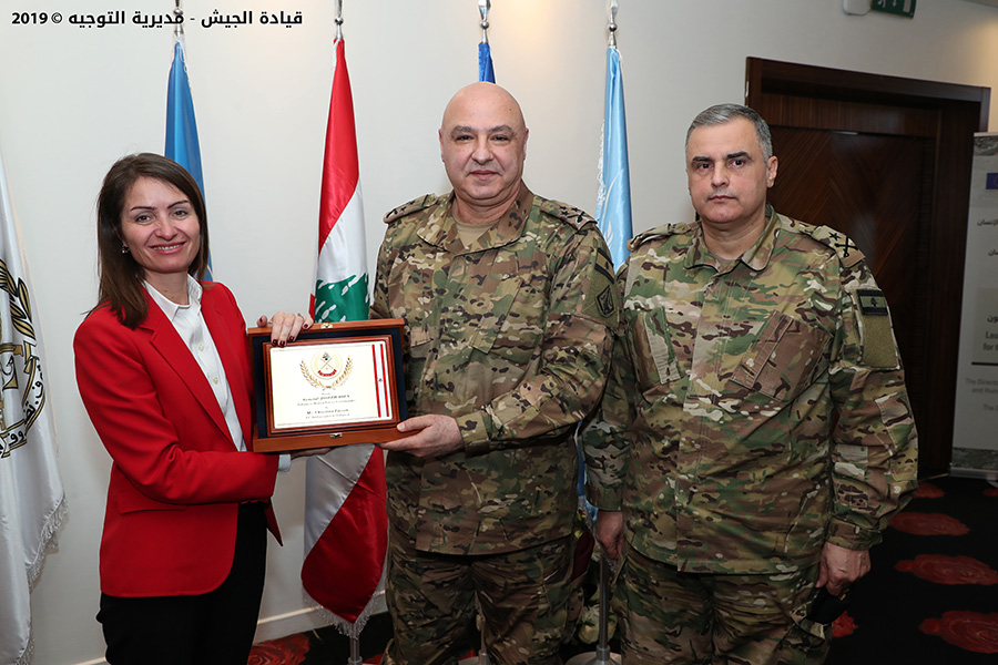 At the end of the ceremony, General Aoun presented shields of appreciation to the EU Ambassador, the UN special coordinator and the High Commissioner’s office for Human Rights for their contribution to this major achievement for Lebanon.