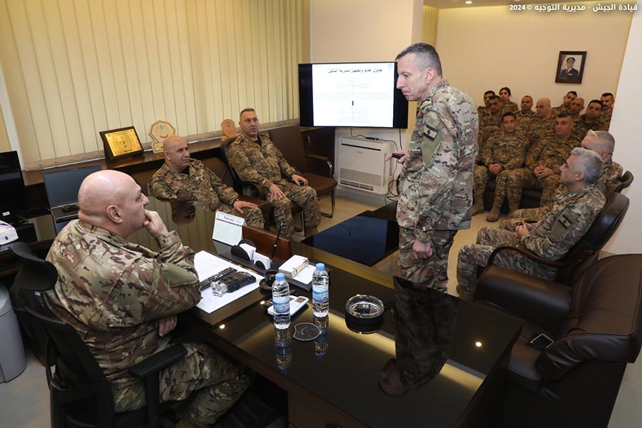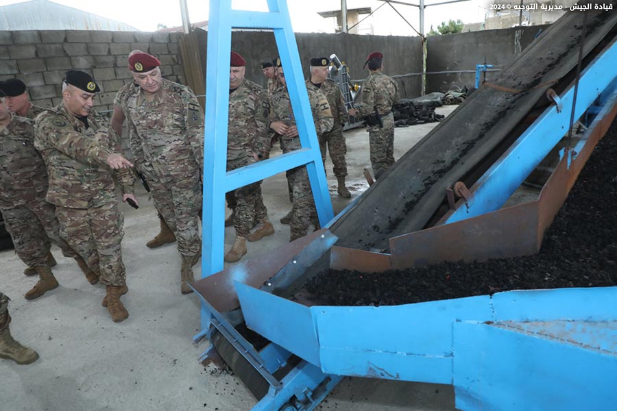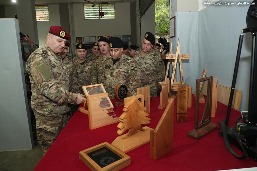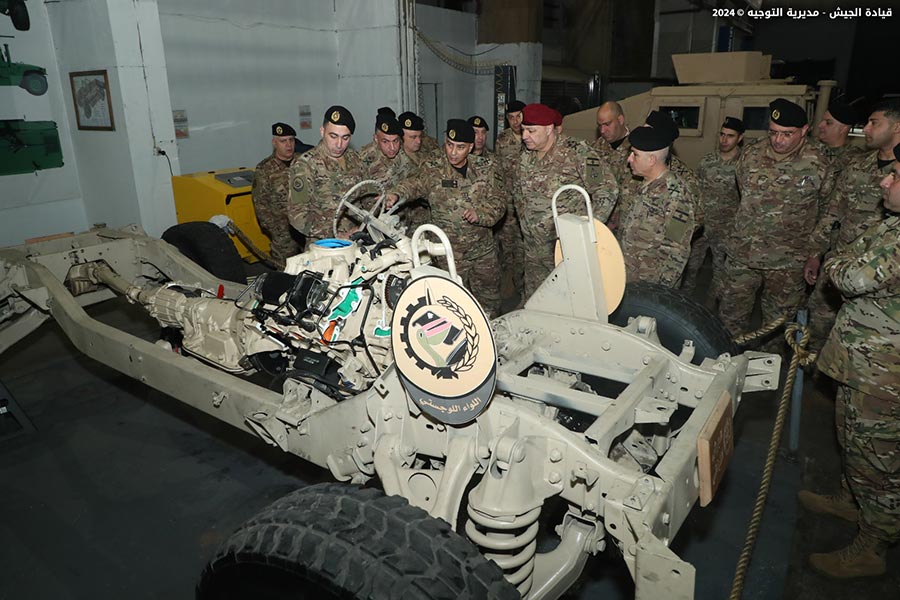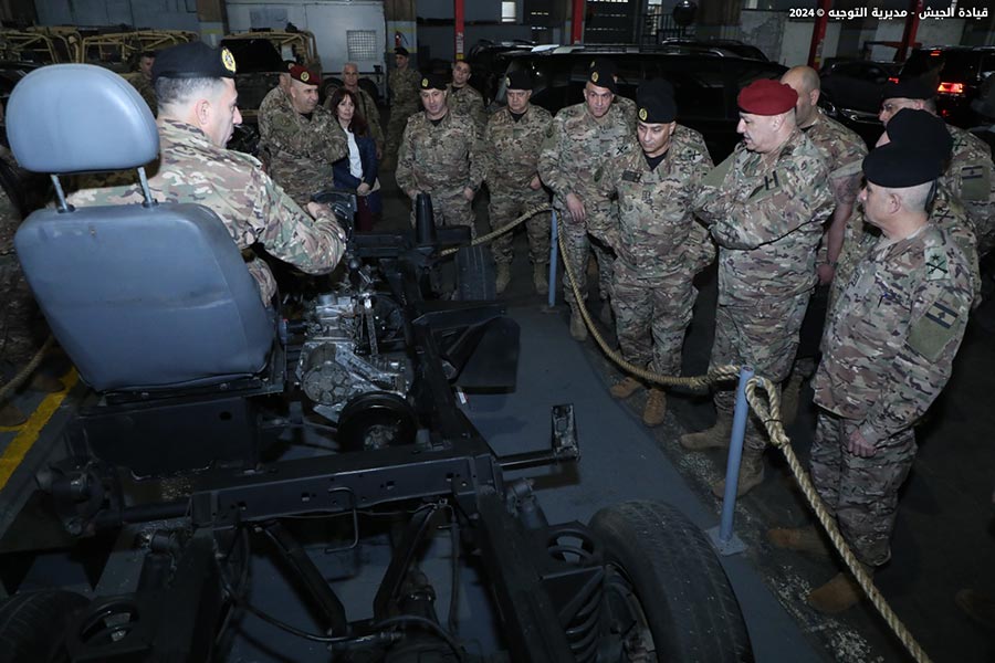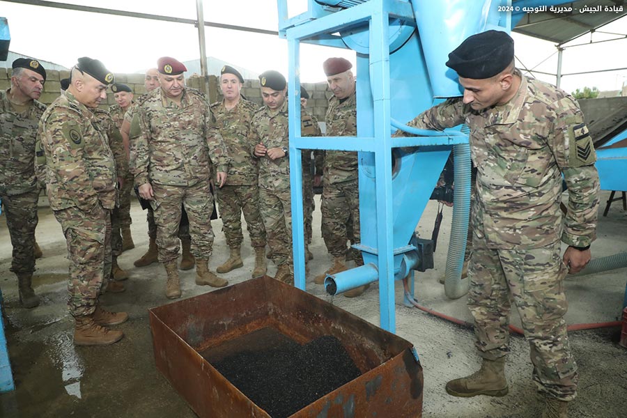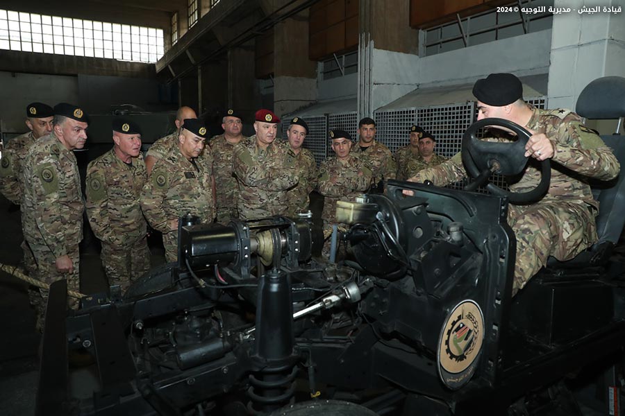The Lebanese Armed Forces Commander, General Joseph Aoun, visited the Logistics Brigade at Youssef Al Osta Barrack in Kfarshima. He met with officers and military personnel and observed the work progress in the brigade's directorates and departments, particularly the factories and newly established units. He heard a briefing on their missions and modernization plans.