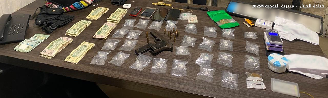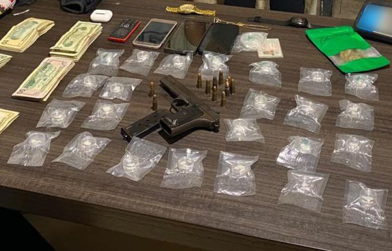 • The arrest of citizens (J.K.) and (F.M.) at the Madfoun checkpoint after attempting to flee, with the first being wanted for possessing a firearm. A pistol and a quantity of drugs were found in their possession.