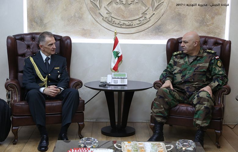 The Armed Forces Commander General Joseph Aoun received in his office in Yarzeh yesterday former Ambassador Abdallah Farhat who headed an accompanying delegation. General Aoun also received a delegation from the municipalities in the region of Deir el-Ahmar headed by Mr. Jean Fakhry and a delegation from the municipality of Kfardebian headed by Mr. Bassam Salameh. The visitors congratulated General Aoun following his appointment as Armed Forces Commander and discussions with the Commander tackled general issues. General Aoun also met during the day with the Slovenian Defense Attaché Colonel Janko Šteh and their talks focused on the means to boost the relations of cooperation between the armies of both countries.