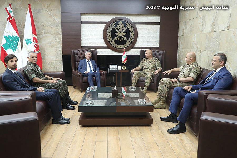 The Lebanese Army Commander in Chief General Joseph Aoun received in his office in Yarzeh MP Raji Saad and they discussed the general situation in the country, then he received the Palestinian Ambassador to Lebanon, Mr. Ashraf Dabour, and discussed joint cooperation based on mutual trust that contributed to maintaining the security in Palestinian camps. He then received the Brazilian Ambassador to Lebanon Mr. Tarcísio De Lima Ferreira Fernandes Costa, accompanied by the Brazilian military attaché Colonel Emerson Costa, then the head of mission and chief of staff of the UNTSO Major General Patrick Gauchat, and they discussed the situation in Lebanon and the region.