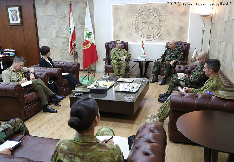 Furthermore, General Aoun received the commander of joint operation in the Australian Defense Forces Admiral David Johnston in the presence of the Chargé d’Affaires in the Australian Embassy Ms. Gemma Huggins as well as the Military Attaché Colonel Christopher Buxton where they discussed the relations of cooperation between both armies.