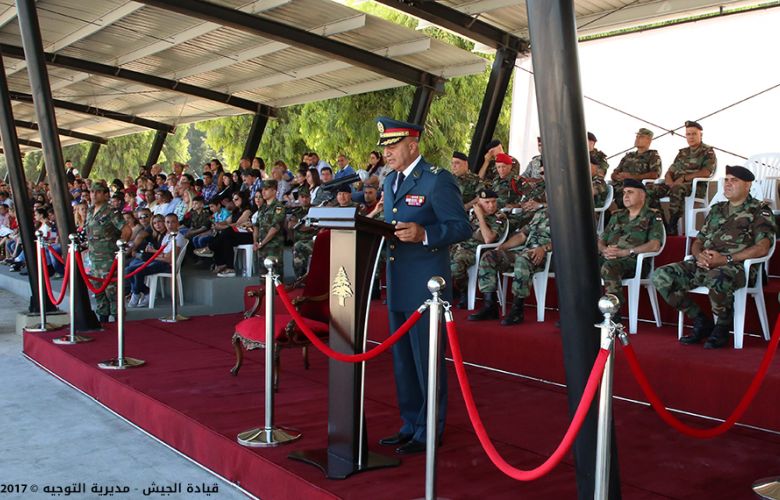 “From now on, you will continue your journey beside your comrades under the banner of the army and its units, so that you exert efforts and offer blood in commitment to the major vow you have expressed with your young voices in which you have confirmed that you will perform your duty as a whole in defense of the country’s flag. Therefore, be fully prepared to perform this noble duty so that you contribute to the survival of the military institution, the nation’s lifeline and stability and the Lebanese’ haven in the face of every danger”.